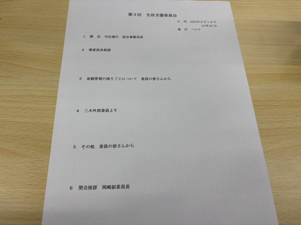 先日開かれた生活支援委員会の定例会は、和やかな雰囲気の中にも活発な意見交換が飛び交う場となりました。