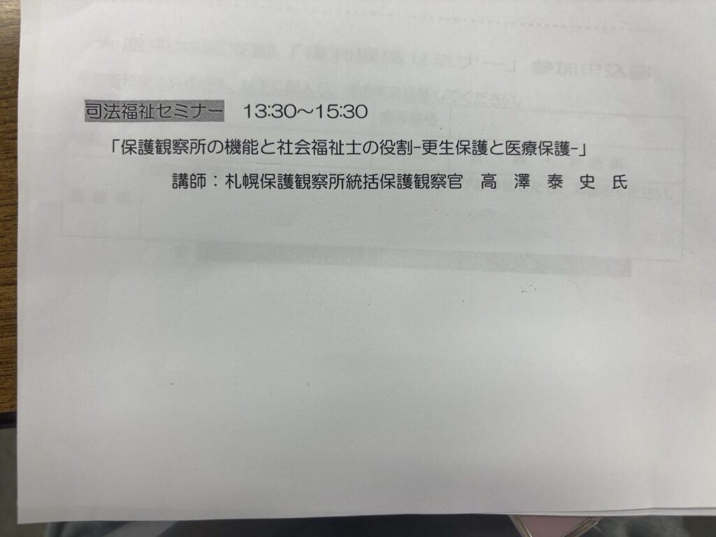 今月行われた社会福祉士研修では、「司法福祉セミナー」が開催されました。