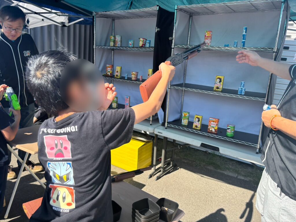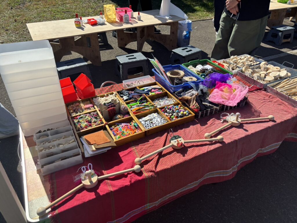 私たちのは綿あめ作成、手作りプレゼントの準備、射的コーナー、魚を釣るゲーム、そして大人気だったハンガー工作についてお手伝いをさせていただきました。