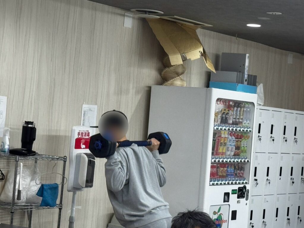黙々とダンベルを上げ下げする姿はまるで別世界の住人。