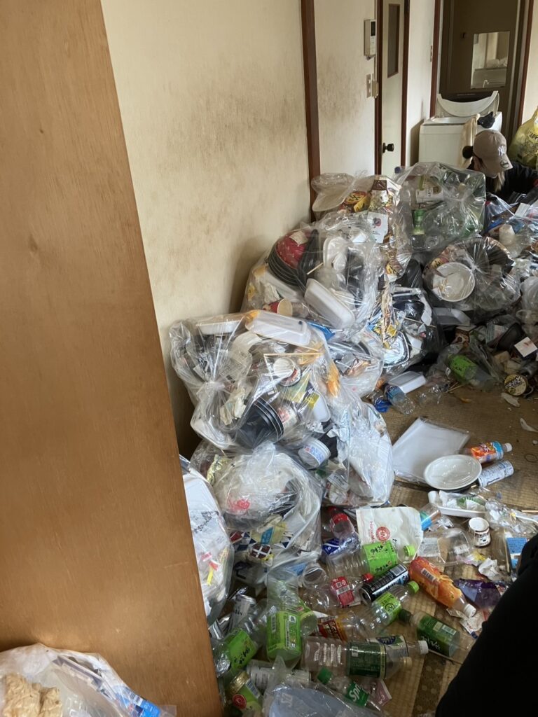 部屋の隅々まで埋め尽くされた袋や空き容器、衣類、使わなくなった家具。