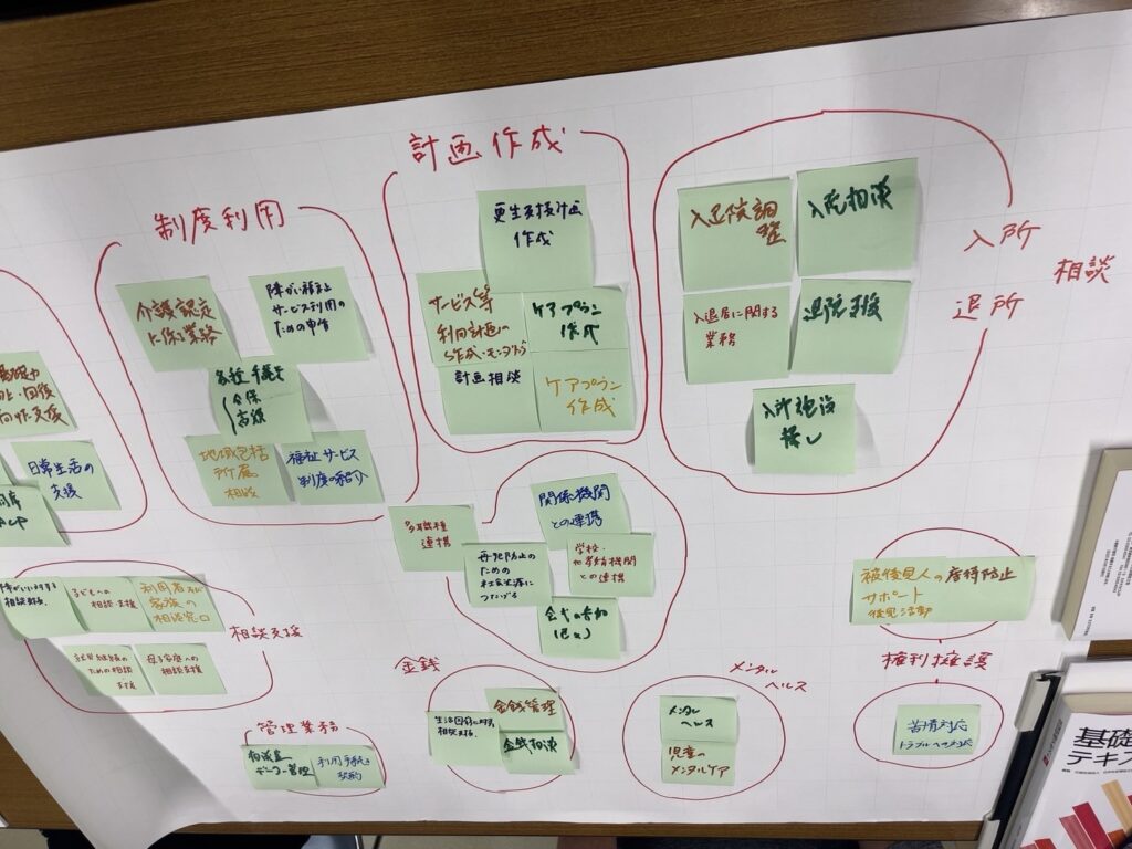 内容は、支援の基本である「週所・対処・計画作成」から始まり、「権利擁護」「メンタルヘルス」「金銭管理」「多職種連携」「相談支援」「管理業務」「制度利用」など、福祉現場の基礎を幅広く網羅した充実のプログラムでした。