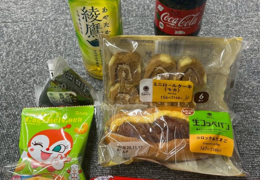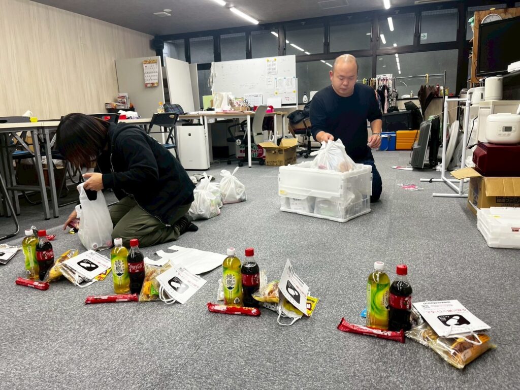 今回も飲み物や菓子パン、おにぎり、お茶などを用意し、必要としている方に届けられるよう丁寧に並べていきました。