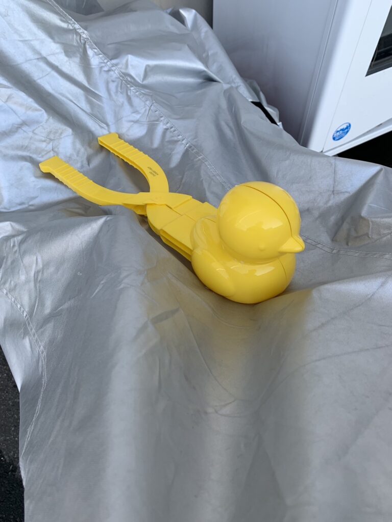 アヒル型の雪玉を使い、丸い体と小さな頭がきれいに整えられています。