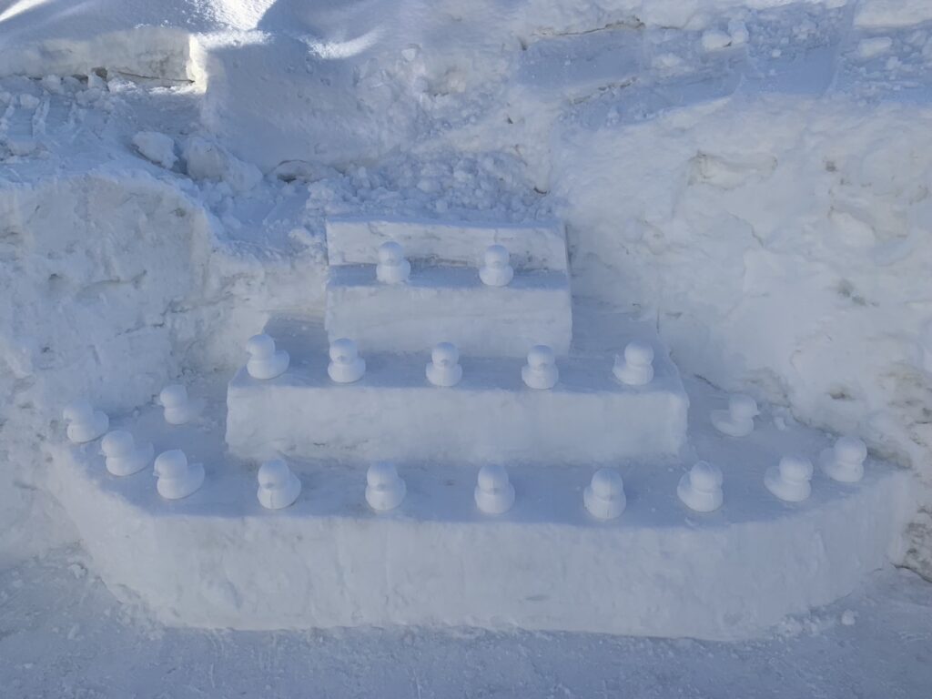 先日ご紹介した、利用者さんが堀に並べたひよこの雪玉。