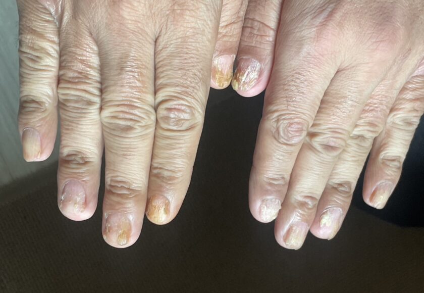 Aさんは、手足の爪に生じる扁平苔癬と背中のかゆみを伴う荒れが見られておりました。