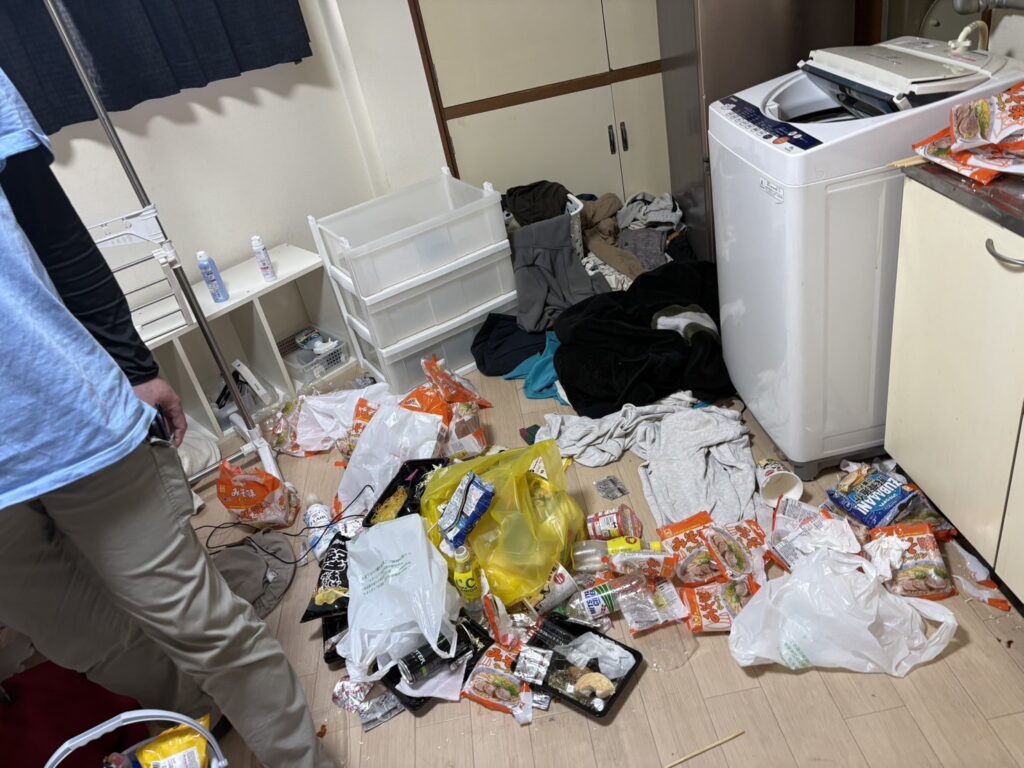 扉が開いた先に広がっていたのは、ゴミが積み重なった部屋の光景でした。