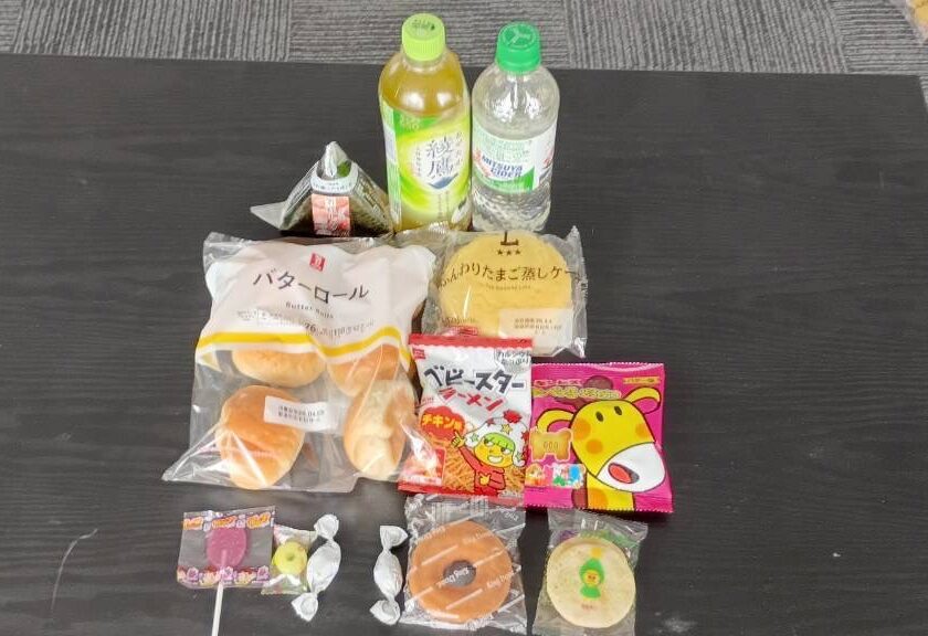 今回は、市販の菓子パンや飲み物・お菓子を用意して、皆さんに配布しました。