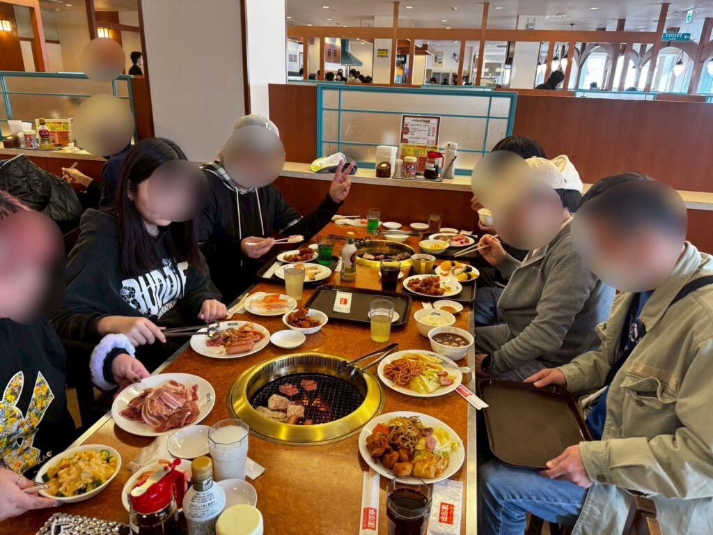 広々とした店内には、香ばしいお肉の焼ける匂いが漂い、午前中の見学で歩き回った一行の食欲を激しく刺激してやみません。